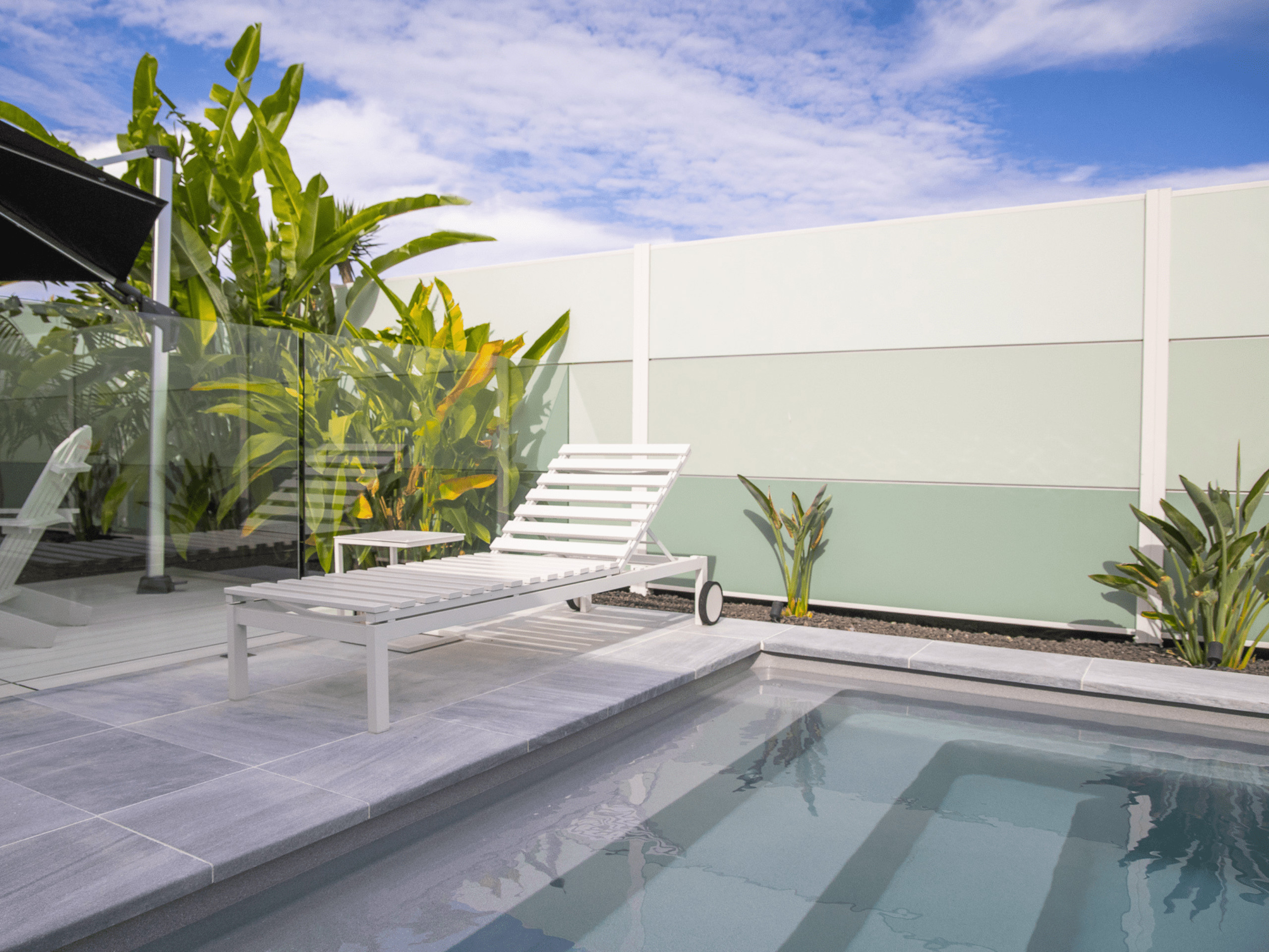 SlimWall® with aluminium posts was selected to create a uniform, cohesive pool wall. The versatile nature of SlimWall® meant that the original brickwork retaining feature could remain in situ, providing additional design flair. Additionally, the homeowner could now enjoy increased visual and acoustic privacy, mainly as the home was located next to public parklands. The finishing touches for this reveal included a coat of bold black paint and the installation of lighting to extend the enjoyment of the pool area.
