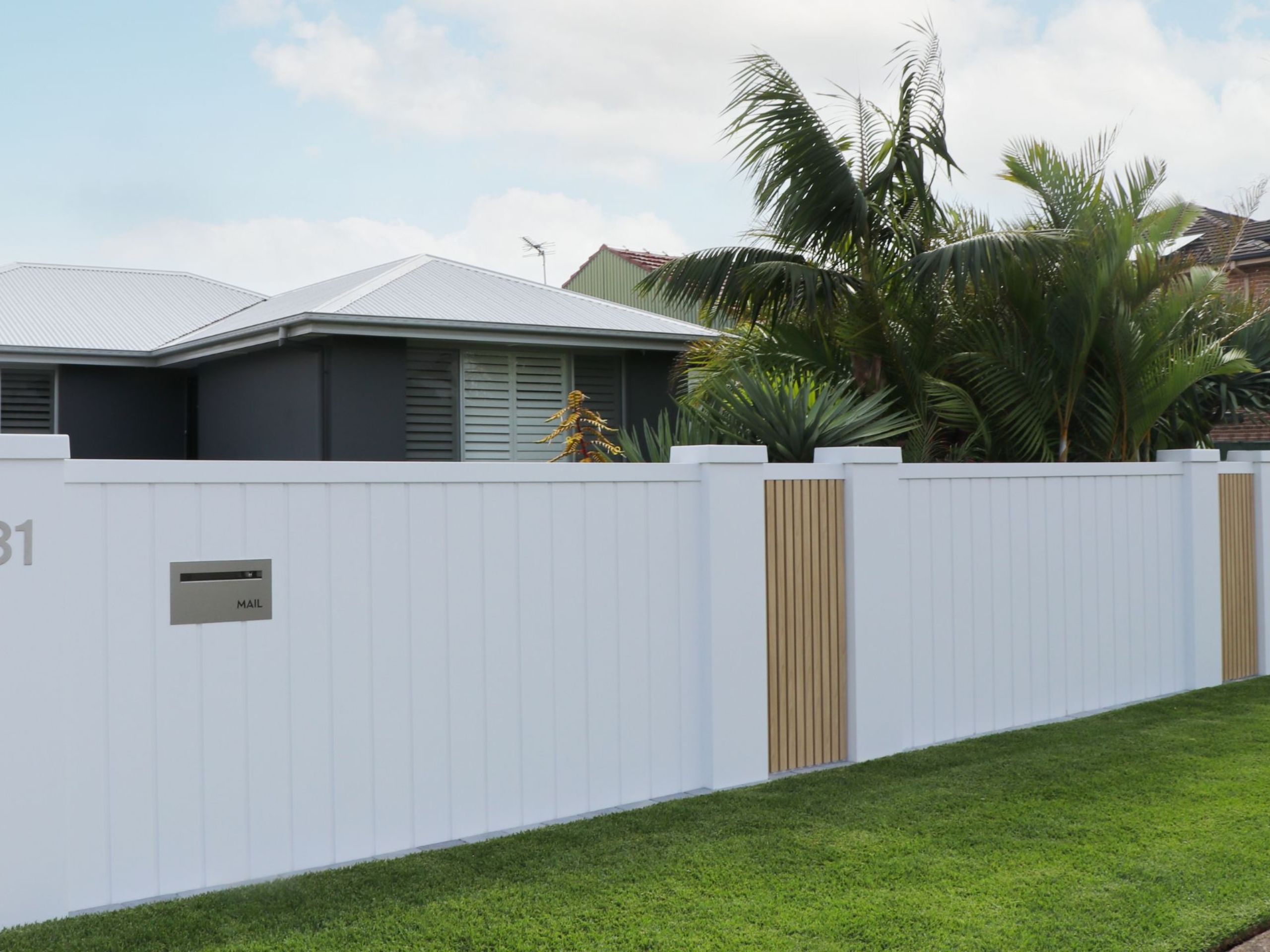 Add post caps, lighting and a painted finish for the perfect coastal street frontage.